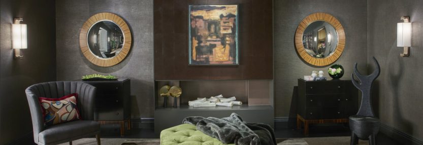 DREAMHOME 2016 – Chicago, IL – 300 SF – Interior Design Balancing rich textures, saturated jewel tones, bold patterns and sculptural silhouettes, the design team created a study space that is warm, layered and inviting. Dark metallic walls provide a backdrop to vibrant floral draperies. An eclectic seating arrangement anchored by an emerald green ottoman, […]