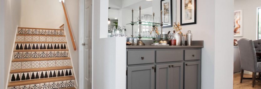 Contemporary designed, neutral, masculine color palette with global accents.