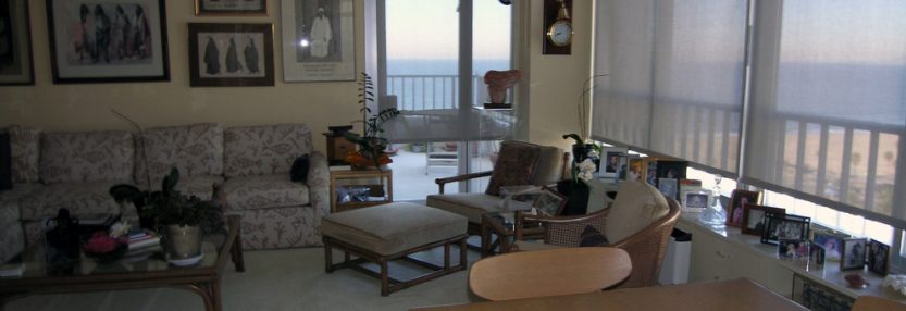 Contemporary apartment at the beach. Selection of colors and fabrics to complement and offset beautiful views of the Pacific ocean.