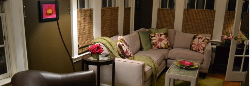 The client ask for living room that was inviting, with a mix of modern and old, in Brookline, MA.