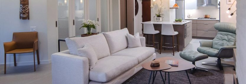 Located in the heart of the marina district in downtown San Diego was a residence with a great location, in a great building, and in need of a full interior remodel. The existing space had a closed off small kitchen with a window looking into living room and dark wood paneling throughout. A modern freshening […]