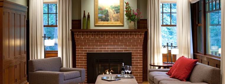 Bungalow Living Room The living room with an original oil painting over the 1915 fireplace and refurbished and new woodwork. (Corey Fitzgerald Photography – Courtesy of M. Wolahan)
