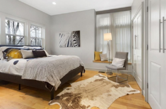 Interesting architectural details and an amazing view of the Boston skyline helped inspire this modern chic staging. Well-selected accents in black and white lent this room high impact, which translated beautifully to the photos.