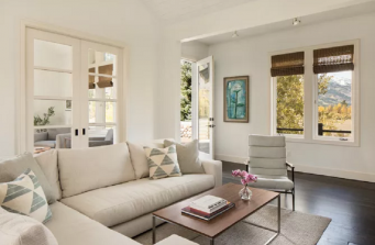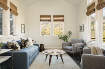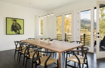 A contemporary remodel in Jackson Hole, WY with sweeping mountain views accented by a neutral interior and sophisticated, plainspoken furnishings.