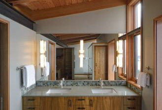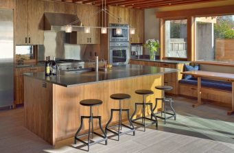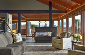 A couple that recently relocated back to Seattle, the wife’s hometown. They have one teen still left at home and two off to college. The home is located on a very special bluff lot in West Seattle perched over Puget sound with a breathtaking view from Mt Rainier to the south and Bainbridge Island to the North. The house is about 4000 sq ft. The style is reminiscent of the 1960’s modern home that was on the site when they bought it. In fact, the foundation shape and room locations are exactly where they were in the previous home. The materials are durable with a nod to the industrial. The craftsmen that built this home are the type you just don’t see on job sites regularly anymore and the joinery, fit and finish are like cabinetry. The metal work is custom made in Seattle. The inspiration was the existing shingled 60’s home on the site which at first was intended to be remodeled but had so many issues when they began to build that none of the original home ended up remaining. The use of pacific NW cedar, fir and locally forged metal make the house feel at one with the bluff. The design team was Colleen Knowles Interior Design, Peter Cohan Architect and Eric Reinhardt Builder. love most about your house, your inspiration, your design team (if you had one). As less and less of the existing house ended of being reused the design morphed into a new home very reminiscent of the one that was there before.