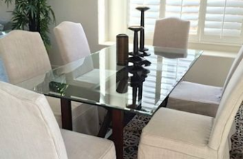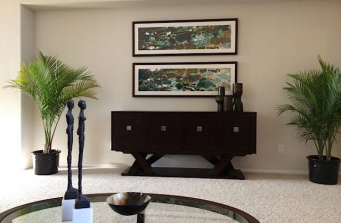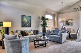 Most furnishings, area rugs, and accessories provided, Dining and kitchen chandeliers, and living room sofa and chairs were existing.