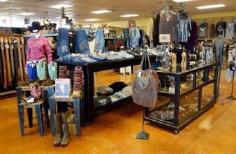 Rolling Western Wear Display Carousels and Cabinets On Casters