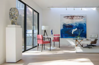 This home was completely gutted and redesigned to create a series of warm livable gallery like spaces to accommodate an extensive contemporary art collection. With gracious natural light, each space was planned to maximize flexibility for furniture and art placement.