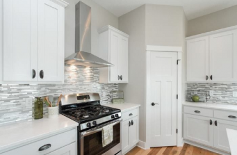 Prestige Builders chose Reclaimed Distressed and Remilled Oak flooring throughout the common areas to create a warm complement to the crisp, clean shiplap look.
