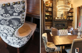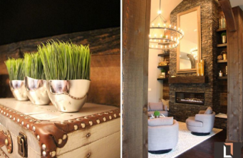 From basic to BEAUTIFULLY BOLD & UNEXPECTED: This grand entry living/dining room is an entertainer’s dream & yet a cozy toasty spot for our client to kick back and sit by the gorgeous new fireplace any time they’d like! If you love reclaimed wood, enormous ceilings, and rustic chic decor…this space is for you!