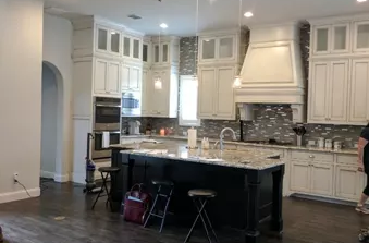 This great couple moved to Frisco, TX from California. They found our group through this very site, Houzz. They wanted a space that was beautiful yet comfortable for everyday life. They loved the deep colors of navy and emerald green. Their style was usually traditional but they wanted a more updated look with cleaner lines. We had a blank canvas to work with. This transformation has been so much fun and they love the results and a house that is now their home.