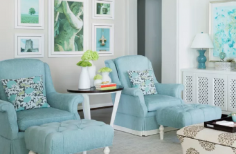 The Home of Interior Designer Karen Davis Customized furniture in easy to care for fabrics, along with colorful details all create Karen’s very personalized beautiful family home.
