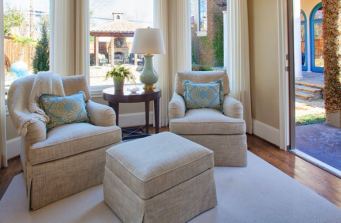 With its wide-plank floors, softly arched windows and decorative masonry, this Dallas home’s Italian-inspired architecture exudes a quiet grandeur. Clean lines, rich fabrications and comfortable furnishings enhance the warmth and character of the interior while creating a sense of understated luxury — this is sophistication at its most inviting. The neutral color scheme, punctuated by deep red and muted turquoise accents, compliments the clients’ collection of artifacts and original artworks. A careful display of colorful abstracts and landscape paintings assists in marrying her contemporary taste with his traditional style; glamorous modern accessories and a few well-placed antiques further blend the couple’s aesthetics. The effect? A highly personalized, beautifully curated space that will age gracefully for years to come.