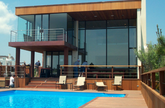 Marco envisioned a modern open space and completely reconfigured the whole house using large-scale glass panels so to bring the ocean view inside the house.