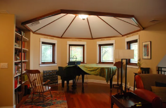 A fully accessible retirement house was built into the side of a wooded slope on the property of a farm that had been in the family for generations. The house is oriented to maximize views to a large pond and an expanded lawn area for gatherings of the extended family. The existing farmhouse was renovated to function as a guest house with a new screen porch that overlooks the new house, the pond, and the lawn. (See Farmstead Redux Project).