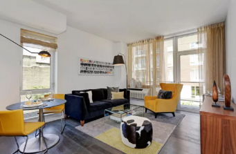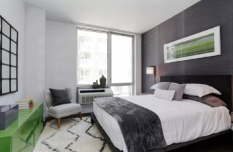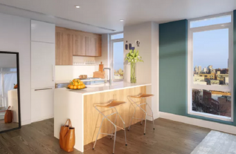 Black granite, white metal windows and black brick create a simple clean flow to this Karl Fischer architectural design. The 33-unit rental project offers residents cutting-edge shared spaces and condo style layouts, all with interior design, landscape and roof deck by Meshberg Group.