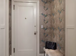 Three apartments were combined to create this 7 room home in Manhattan’s West Village for a young couple and their three small girls. A kids’ wing boasts a colorful playroom, a butterfly-themed bedroom, and a bath. The parents’ wing includes a home office for two (which also doubles as a guest room), two walk-in closets, a master bedroom & bath. A family room leads to a gracious living/dining room for formal entertaining. A large eat-in kitchen and laundry room complete the space. Integrated lighting, audio/video and electric shades make this a modern home in a classic pre-war building.