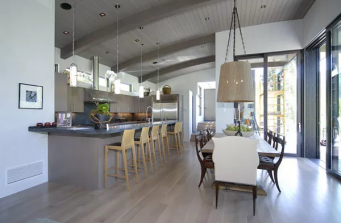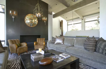This home retreat is mountain living at its best. High ceilings and exposed beams make this home feel quite large with plenty of space for big gatherings. The living space has an open design, but designated areas for relaxing and entertaining make the space feel homey and gives the owners plenty of room to enjoy a variety of activities. Floor to ceiling windows offer amazing views of the surrounding Rocky Mountains.