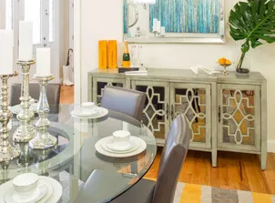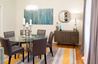 A young family expecting made the big move from their city high rise to the spacious suburbs. They had more than enough room but needed help making their large new space for their growing family feel like home. That’s where we came in and gave them a distinct chic and colorful design that compliments their personalities as well as their open floor plan!