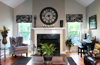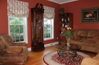 I was contacted by the homeowner to help update colors and window treatments in this home. The green family room was in need of a lighter feel. We updated the color with a neutral pallet and it took years off this room, the dining-room was elegant, we infused an updated rug and dramatic wall color to bring this traditional room into a more transitional style. Letting the room evolve with the homeowners taste. We updated the formal living-room with new color and window treatments along with a new furniture layout.