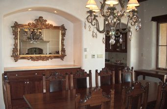 This fascinatingly lovely couple relocating from Virginia’s lush rolling suburbs of Washington, DC with their taste decidedly rooted in Colonial traditional design motifs, melded well with the traditions of their new stunning New Mexico landscape ad architecture. Traveling to the Dallas Market, we selected every piece of furniture, light fixture, fabric and decorative accessory for this Parade of Homes award-winning custom home.