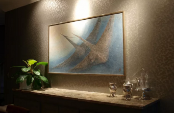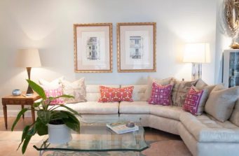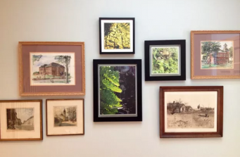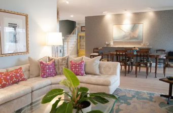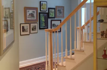 After completing this project many years ago, our client called us to refresh her home that she loves. Incorporating our existing designs we updated the color scheme to include: new paint colors, refinished wood floors, added new wall covering, natural woven shades and framed photography.