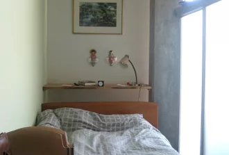 Being an open loft floor plan, the space needed some definition and space planning between sleep, work, and living areas. We added a metal framed frosted glass partition that allowed for sleeping privacy while allowing some light to filter through.