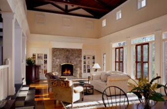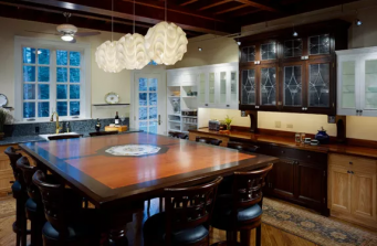 From the street, this home portrays itself as a simple, elegant wood ranch. Inside it contains a master wing, a guest bedroom wing with windowed loggia, 3-car garage, two-story living and dining room and gourmet eat- in kitchen. Views from the lake reveal a three story, stone and wood sided Tuscan villa seamlessly integrated to the rest of the structure.