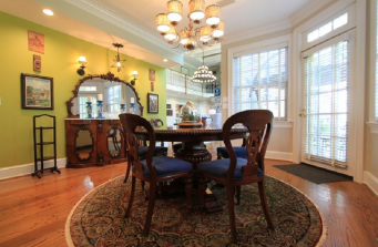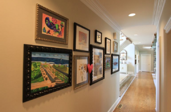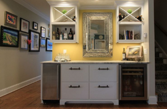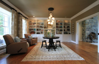 This project took a year to complete and the client and I are both sad because we had a lot of fun! I am working on adding BEFORE and AFTER photos on my LoveYourRoom facebook page and DIY blog (should be up 8/31/16). We added custom built in cabinets, lots of unique wallpaper and comfortable furniture through out. We incorporated as much of my clients decor as possible and only added anything that did not feel ordinary :). The largest demo and install occurred in the kitchen. New flooring to blend with the original wood throughout the rest. A full 5 slabs of chocolate fantasy honed granite, and new glass penny round back splash. We did keep the original cabinetry and had it spray painted creamy white.