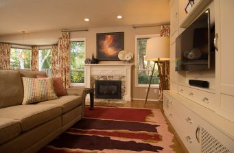 A rich color scheme and super comfortable furnishings create a warm and livable “forever home”.