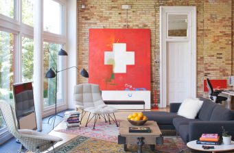 I like the design you have for the living room. Even though I am a fan for monotone color, but the peach painting really merges into the whole design!