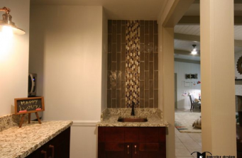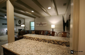 This great basement space got a major overhaul where the whole family could use and enjoy it. It got a brand new wet bar along with a family TV space and a special play area for the kids with a super soft rug and plenty of toy storage. Now weekends will be spent downstairs watching the game and playing together for hours for this growing family.