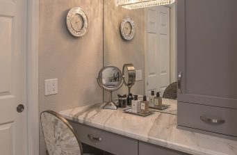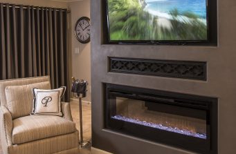 We re-designed and captured additional space to increase the size of the Master bath with added WC, Steam Shower, His & Her Custom Closets, Makeup Vanity, Added Storage for toiletries, Master Bedroom Furnishings, Lighting, Carpet, Paint, Feature Wall with Electric Fireplace & Large Flat-Screen television.