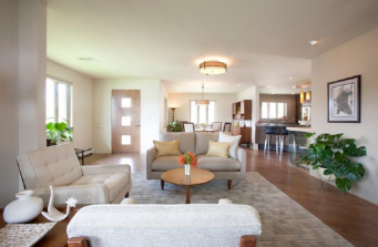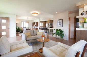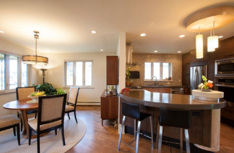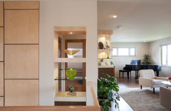 Eliminating outdated architectural features to the 1950’s split-level ranch modernized the Denver home. Removing walls between three small rooms created an open floor plan with dramatic results. Natural light drawn throughout the first floor, with muted hues helped to enhance the now-bright airy space. A “less is more” approach to furnishings ensured that collected treasures were well displayed while modern built-in cabinets created a worthy home for vintage finds. The original kitchen was modernized with custom Zebrawood cabinetry that visually expands the small space and allows for interaction between guests through enhanced sight lines. The lower level was divided to provide a large master suite and media center, creating both a cozy comfort zone and a haven for relaxing.
