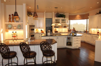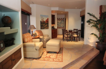 This was a project that I got called into on a hail mary. The original interior designer could not meet the budget requirements as promised and was let go one week before a drop dead furniture order had to be placed. We did the design in four days and had a full house of custom furniture and window treatments delivered in just six weeks. And all of this was done without ever talking or meeting with the client, who lived out of state. Of course, we had a brilliant coach and liaison in Carmella Rabidoux of Total Property Services. She said, “Desert, happy, warm and comfortable.”