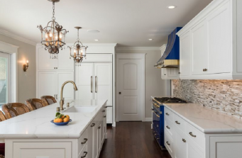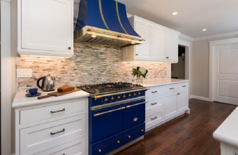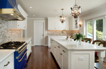 Beautiful White _ Bold Blue Kitchen