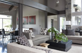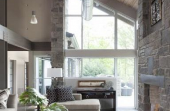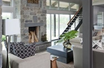 This rustic contemporary, luxury lake house in Greers Ferry was rebuilt and redesigned after a tornado. Warm woods and expansive landscape views combine with galvanized metal and gray tones, creating a comfortable yet unyielding family getaway.