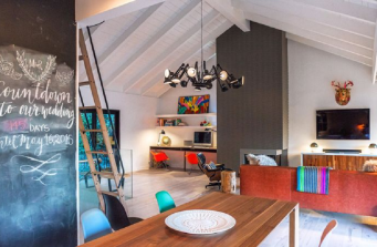 eclectic, hip and modern. The wallpaper and lighting alone deserve to be