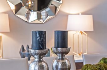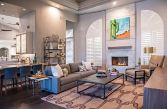 This 5,000 square foot home located in Scottsdale, Arizona, was updated in order to reflect the family’s style as well as cater to their entertaining needs and wants. The project included new furnishings and fixtures in the dining room, new custom-built entertainment centers and furnishings in both living spaces, a custom concrete-inspired paint finish on the fireplace surround, demolishing the existing enclosed wet bar and adding a decorative wall finish, and new flooring and paint throughout.