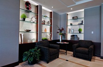 Designer and team is onsite for the installation of furnishings.