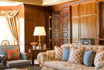 This high end residence on beautifully landscaped grounds was completed in 2002 for an East Indian family. As principal designer for BraytonHughes Design Studio, Nina worked closely with the client to interpret their heritage and create an interior worthy of their lavish culture. The layered richness of materials and precise craftsmanship of the decorative furnishings were carefully selected and designed to highlight the opulent taste of the residents.