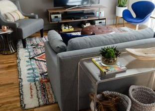 A lovely couple in Jersey City called with a problem – their baby came a tad bit early and they needed to pull their living room together with some help. They worked with an interior designer prior, but their style was clearly misrepresented. We worked with the couple on a style excercise whereby we identified “Warm Industrial Chic” as their personal style and sought out pieces that matched their home’s personality, while injecting loads of color for this fun couple!