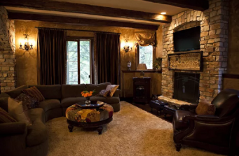 Finishing the lower level of this newer home to give it a warm, aged feel. Real stonework including a fireplace, and several arches add character and texture. Heated wood floors take the chill out. Spaces for a bar, games, TV, and a home theater make it a great place for the family.