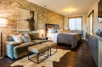 With both kids off to college, our clients opted to downsize from a sprawling ranch house in Poway to a modern loft-style townhouse in the city. Their new home had four levels with interesting, multi-functional spaces. The main level, which holds the kitchen, dining area, and living room, offers an open floor plan for ease of use and maximization of space.