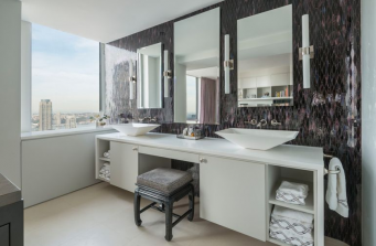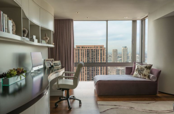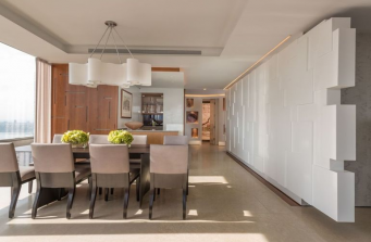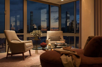 The geometric cityscape and lyrical pathways of Central Park serve as the backdrop for this luxurious urban dwelling high above Lincoln Center.