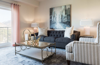 For this massive Multi-Family project located in Sandy, Utah, Belle Kurudzija took her design inspiration from the project’s sweeping views of the Wasatch Mountains. Belle and her Associate, Emily Hatfield, were closely involved in the project from concept through completion. Working thoughtfully with the builder’s budgets they selected interior materials and finishes with an upscale look on a relatively frugal budget. Anyone can throw money at a project. It takes a designer with skill, experience and a deft approach to negotiating to achieve great design on a budget. This was handled so well at The Ridge that the final prestigious design feels seamless and effortless. A breathtaking Club Room, Leasing Office and Lobby area immediately give someone entering a feeling of class, elegance and high-end living. With the Multi-Family housing arena exploding across the Wasatch Front, it’s vital that communities establish a brand and identity. Belle was closely involved with the branding for The Ridge project, including the design of their signature logo, interior and exterior signage and even the placing of exterior lighting on the patio deck areas. It’s impossible to walk through the entire project without seeing a detail, a material choice, furnishings, lighting and flooring, and a hundred other design elements that were not selected with great care and research by Belle and her team. One of her most successful projects to date, The Ridge quickly established the raising of a bar by Belle, creating a new standard of excellence in Multi-Family properties without equal. From the exterior materials and color selections, to the sweeping patio and deck areas, and the beautifully executed model residences and public spaces, this project truly has it all – and the talented team at Lisman Studio was privileged to be a part of it.