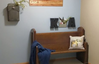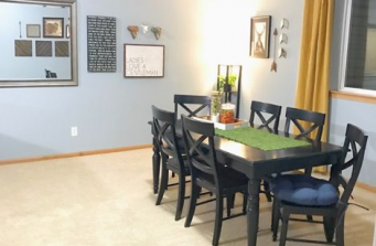 A masculine themed basement for a man and his house full of women. A wonderful space for movie night, gentlemen’s poker night, or family game night.