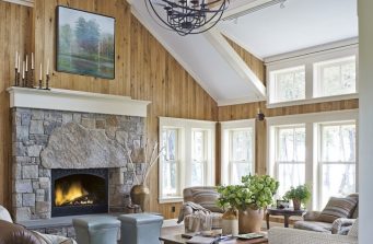 New build luxury cabin with a focus on sustainable materials in South Hero, Vermont. In partnership with Beyond the Garden Interiors & Battle Associates Architects.